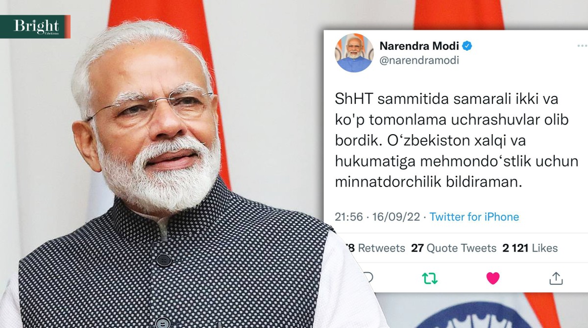 As you know, the Samarkand summit of the Shanghai Cooperation Organization was held on September 15-16. Indian Prime Minister Narendra Modi also participated in it. After this event, the Prime Minister, who left for his country, wrote a post in Uzbek on his Twitter page, thanking the people of Uzbekistan.
